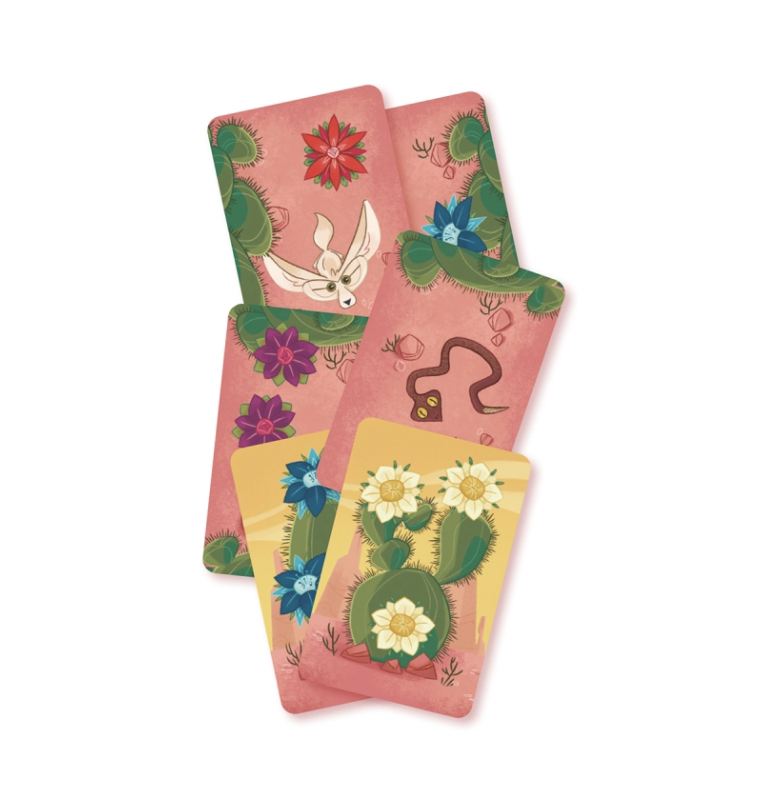 Aprender las reglas no os llevará más de 10 minutos. Para empezar a jugar, barajad las 44 cartas de cactus y dejadlas en el centro de la mesa. Robad seis cartas del mazo y ponedlas en fila mostrando su reverso. Estos son los cactus que tenéis a vuestra disposición mientras exploráis el desierto. Cuantas más flores muestre el reverso, mayor será la recompensa, ¡pero también será más peligroso obtenerla!